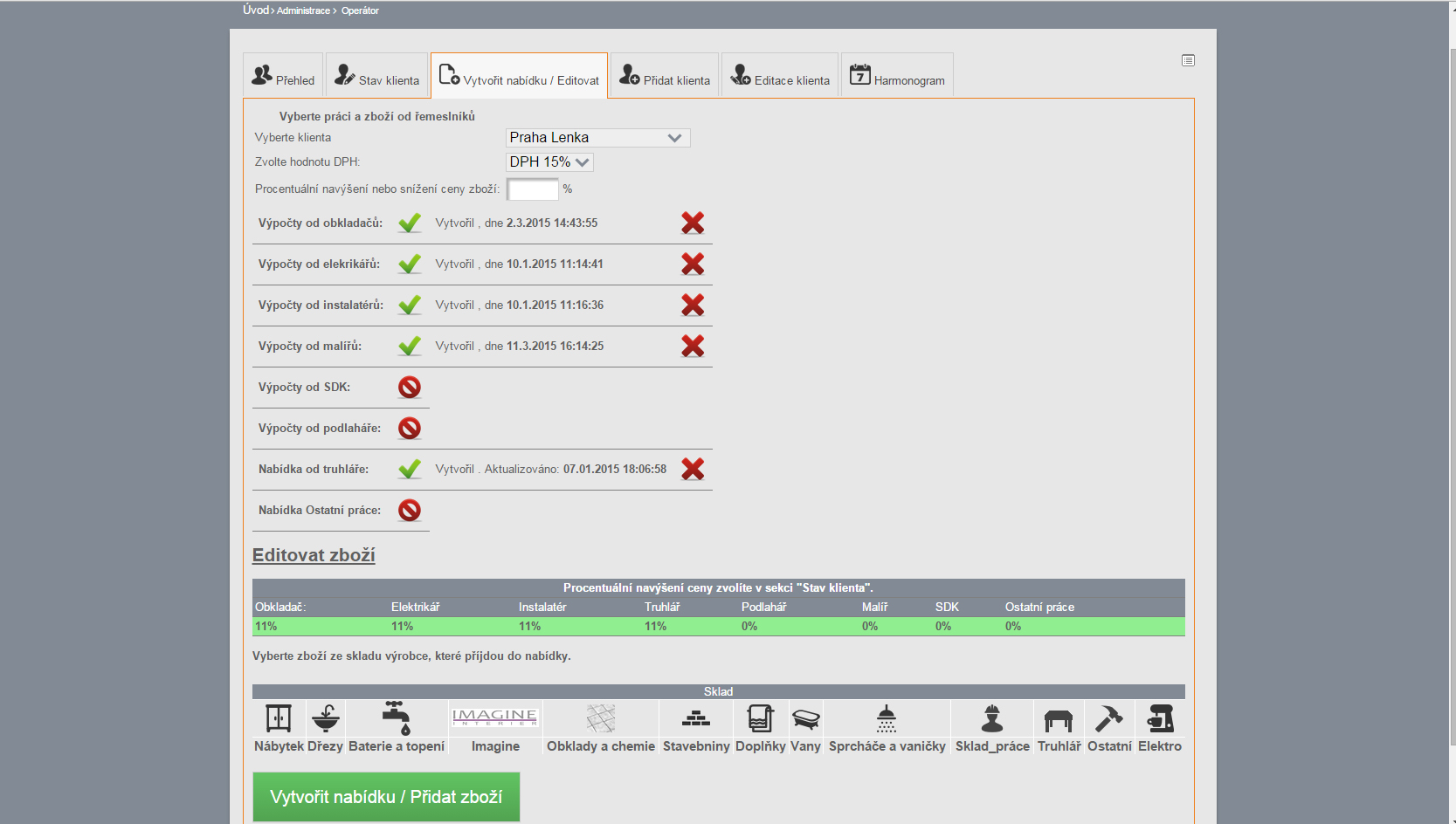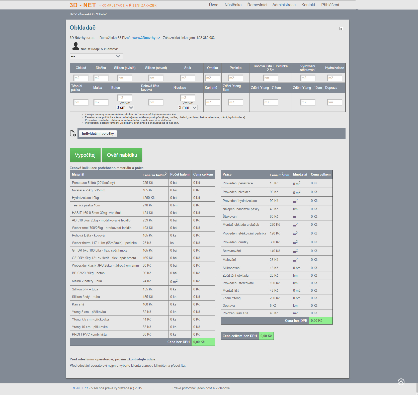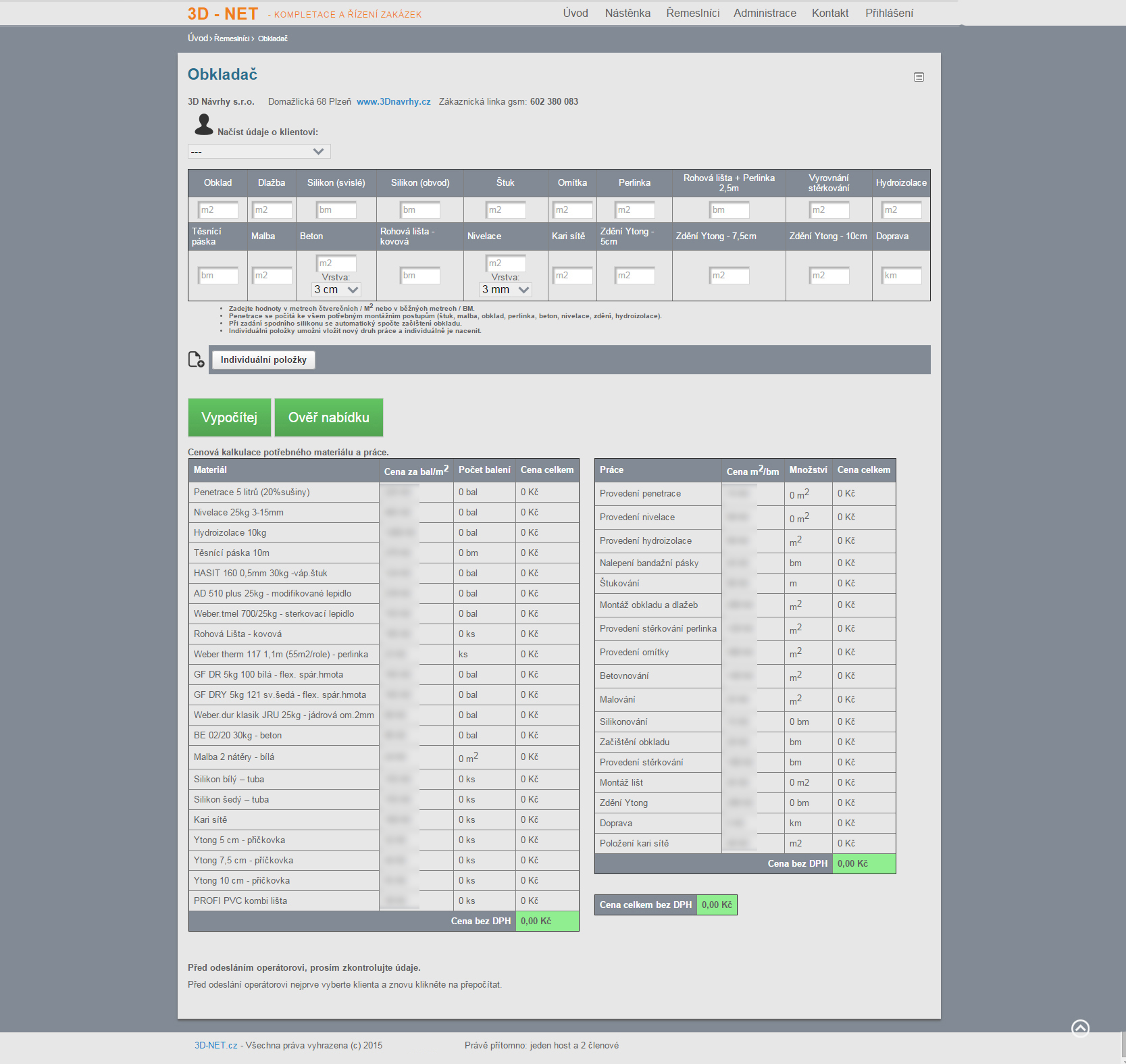 umožní rychle a efektivně vytvořit nabídku pro klienta. Pro výpočet použivá
