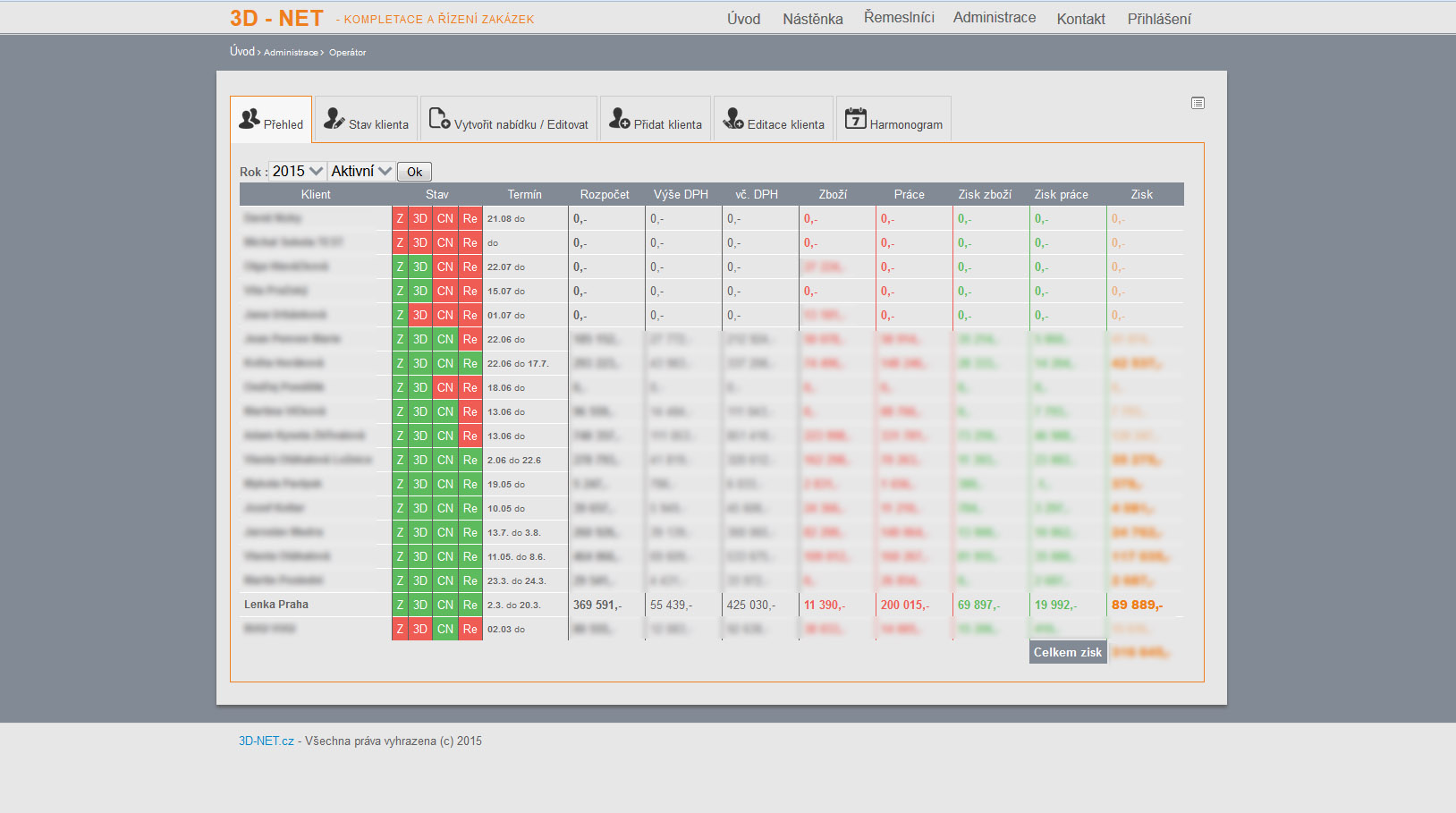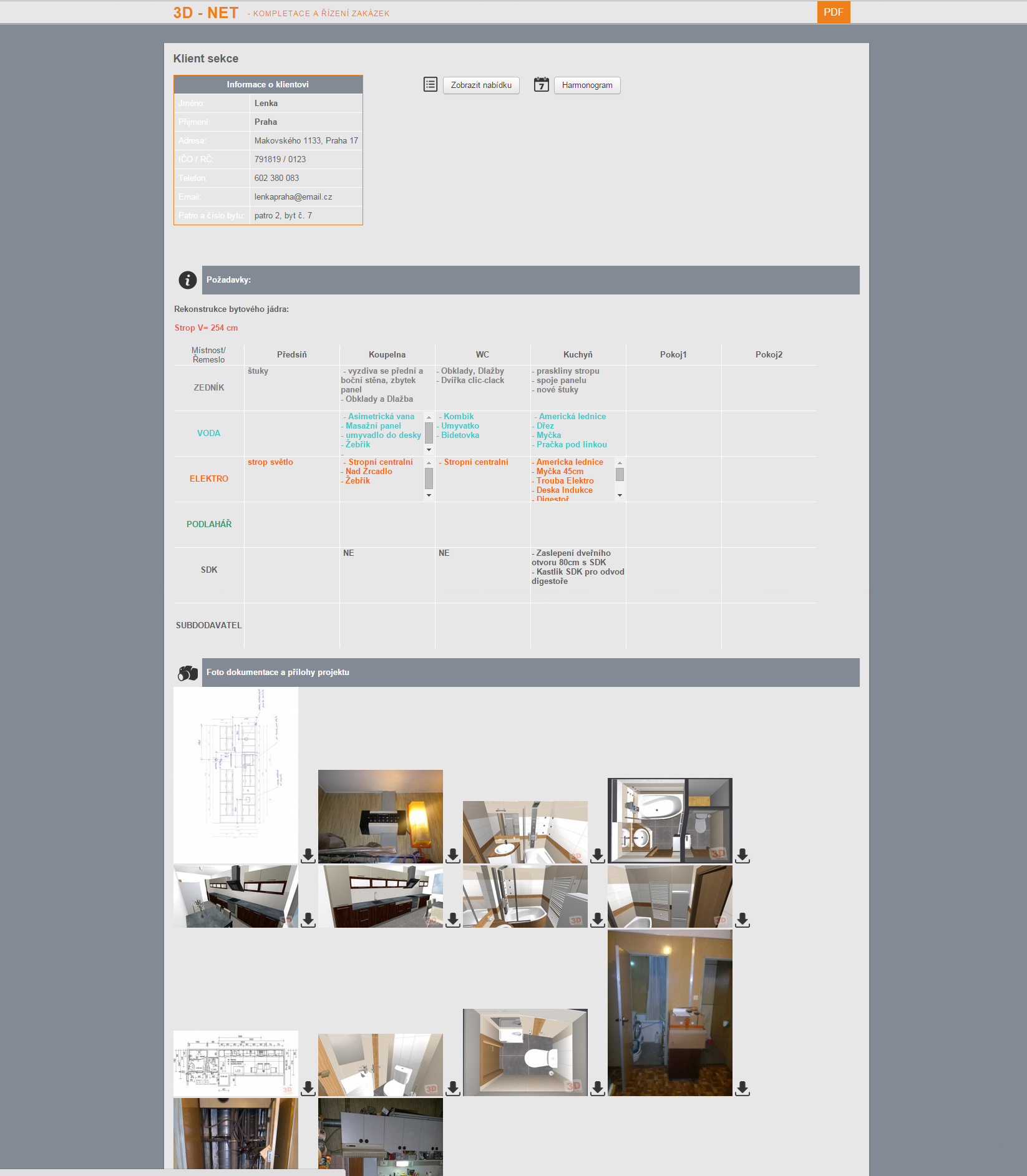 klientskou sekci, kde vidí aktuální stav projektu. Sekce je