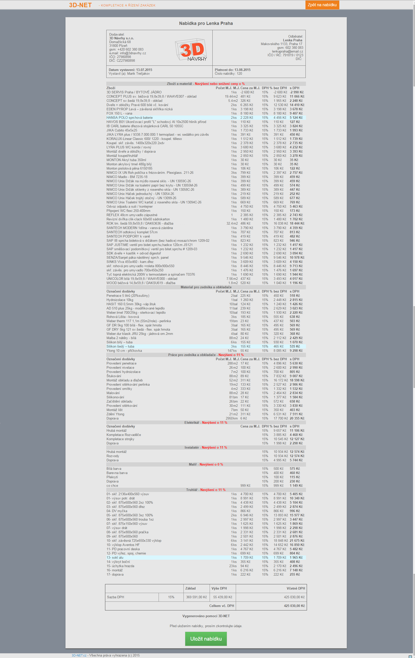 Vlastnosti: S pomocí systému 3D NET vytvoříte profesionální komplexní nabídku, kterou budete mít hotovou během několika hodin od všech kolegů nebo zaměstnaců.